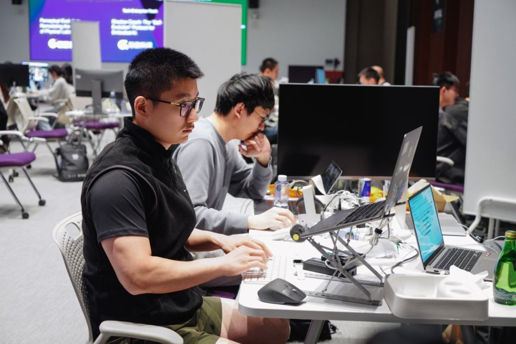 4月25日至26日,长三角聚劲科创大赛“未来极客专赛”在上海纽约大学前滩校区举办。这是一场以“智能体工程”为主题的24小时黑客松,选手们借助智谱GLM 5.1、Tripo、JetBrains 及 v0 by Vercel 等前沿技术工具与平台,在24小时内从零打造出可交互的三维空间产品。获奖者将直通长三角聚劲科创大赛全国总决赛。